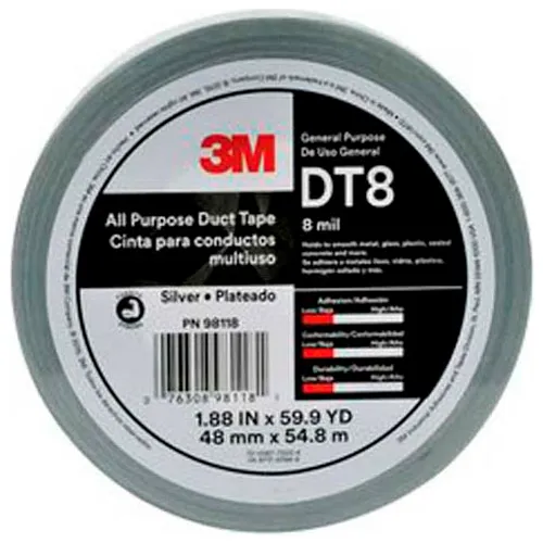 3M™ All Purpose Duct Tape DT8 Silver, 1-7/8" x 180', 8 Mil - Pkg Qty 24