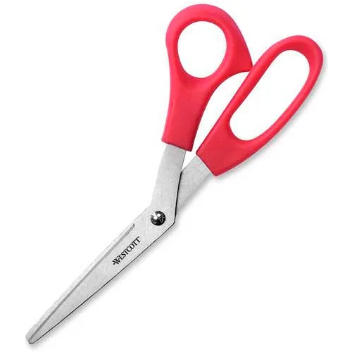 Westcott® All Purpose Value Scissors, 8"L Bent, Red