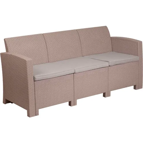 Flash Furniture All-Weather Faux Rattan Sofa - Light Gray with Light Gray Cushions