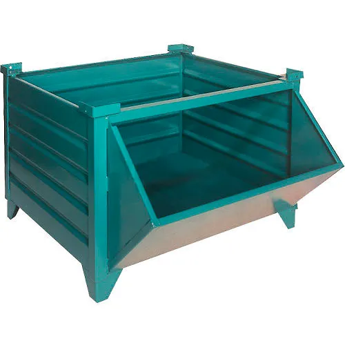 Global Industrial Stackable Steel Container,Hopper Front, 42"Lx36-1/2"Wx29-1/2"H, 4000 lb Cap, Green