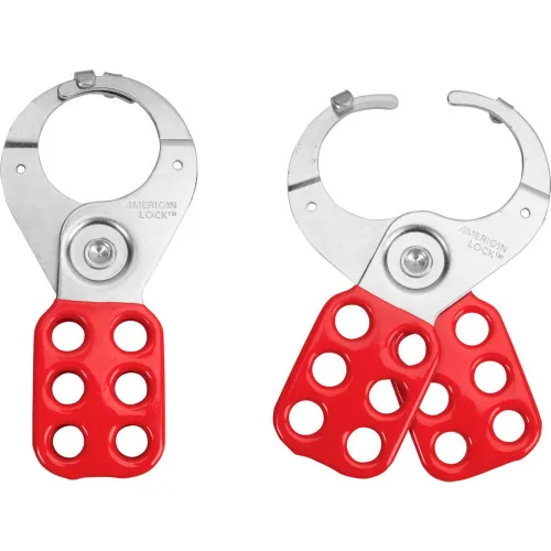 Master Lock® ALO802 Safety Hasp, 1-1/2" diameter steel jaws with locking tabs, Red