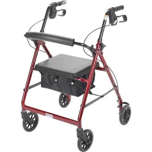 Aluminum Rollator with 6" Casters, Fold Up and Removable Back Support, Padded Seat, Red