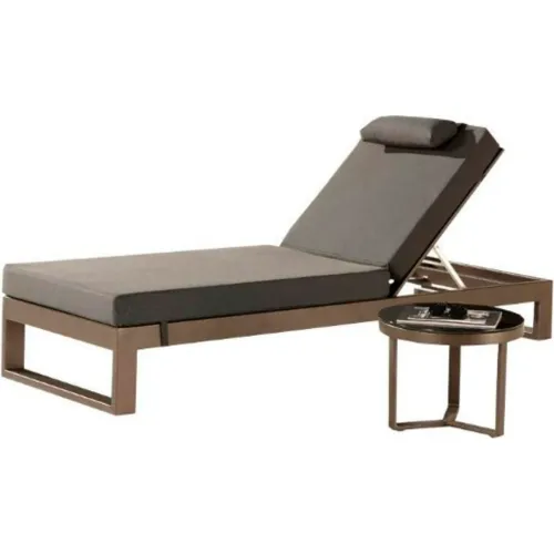 Babmar® Amber Chaise Lounge with Sunproof Black Cushions, Brown Frame