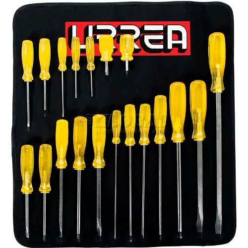 Urrea Amber Handle Screwdriver Set, 9600E, Flat, Cabinet & Phillips Tip, 19 Pieces