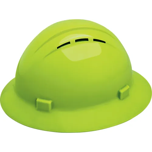 ERB® Americana® Vented Full Brim Safety Helmet, 4-Point Slide-Lock Suspension, Hi-Viz Lime - Pkg Qty 12