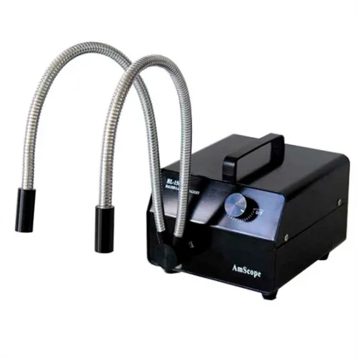 AmScope HL150-BY 150W Dual Gooseneck Fiber-Optic Illuminator, Black