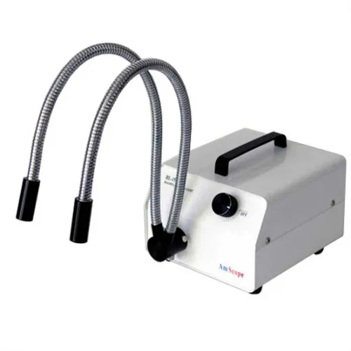 AmScope HL150-AY 150W Dual Gooseneck Fiber Optic Illuminator, White