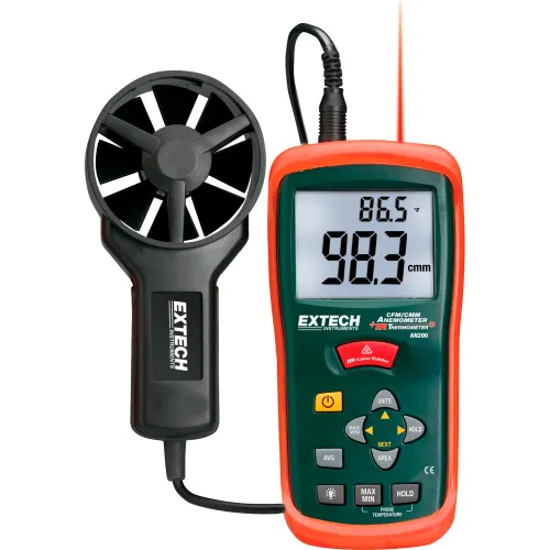Extech AN200-NIST CFM/CMM Thermo-Anemonmeter & Infrared Thermometer, Green/Orange, 2.9"W NIST Cert.