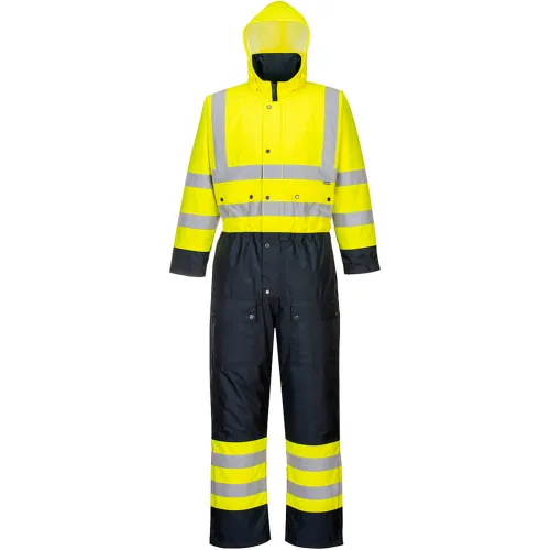 Portwest® ANSI Class 3 Hi-Vis Contrast Winter Coverall, XL, Yellow/Navy