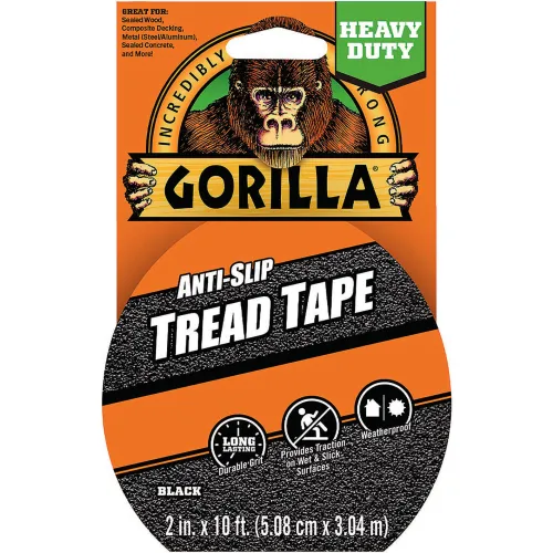 Gorilla® Anti-Slip Tread Tape Roll, 10'L x 2"W, Black