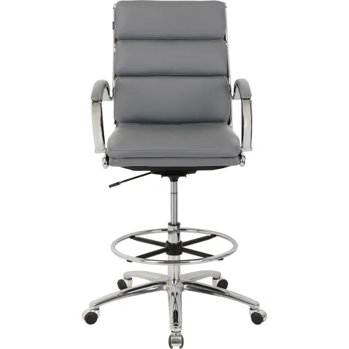 Interion® Antimicrobial Bonded Leather Modern Ribbed Executive Stool, Charcoal Gray