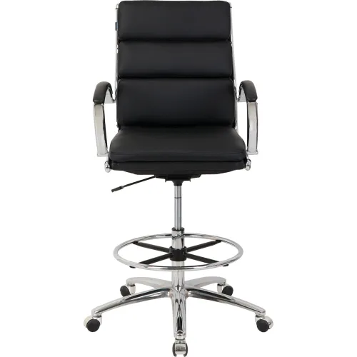 Interion® Antimicrobial Bonded Leather Modern Ribbed Executive Stool, Black