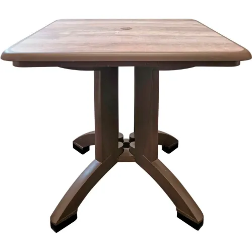 Grosfillex® Aquaba 32" Square Resin Pedestal Table w/ Umbrella Hole, Ranch On Bronze Frame - Pkg Qty 2