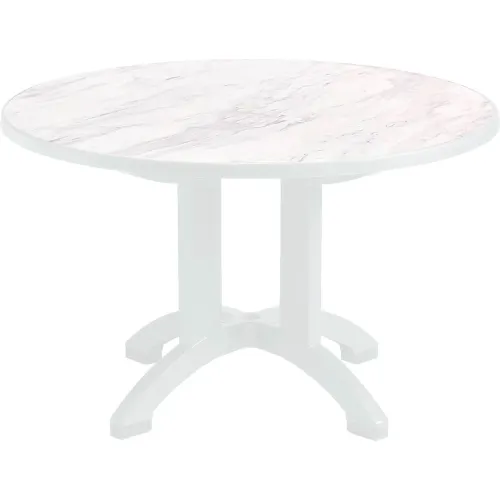 Grosfillex® Aquaba 48" Round Resin Pedestal Table W/ Umbrella Hole, White Marble On White Frame