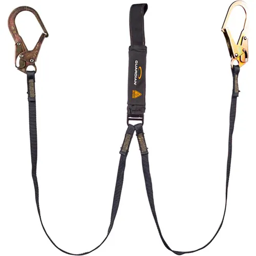 Guardian Arc Flash Shock Absorbing Lanyard, Fixed, Dual Leg, Steel Rebar Hook & Web Loop, 6'L