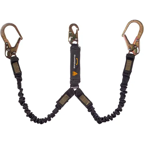 Guardian Arc Flash Shock Absorbing Lanyard, Stretch, Dual Leg, Steel Rebar Hook, 6'L