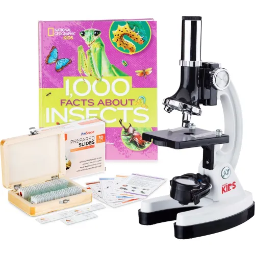 AmScope 120X-1200X 52-pc Beginner Microscope STEM Kit with Deluxe Insect Exploration Kit