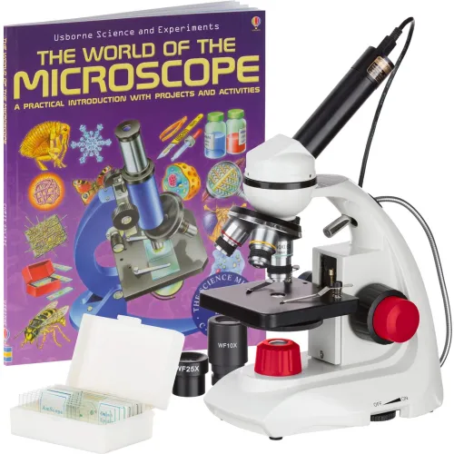 AmScope 40X-1000X Dual LED Portable Compound Microscope with Camera, Slides & Book
