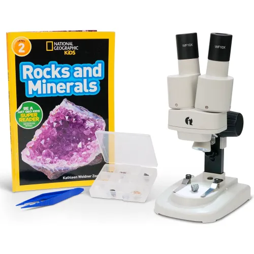 AmScope IQCrew 20x Portable LED Stereo Microscope, Mini Rock, Mineral Collection & Book Kit