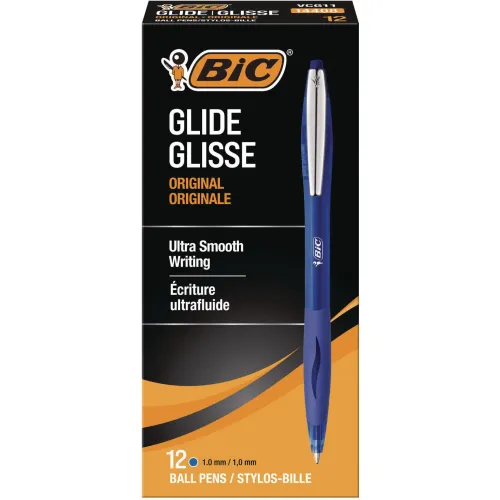 BIC® GLIDE Ballpoint Pen, Retractable, Medium 1 mm, Blue Ink, Dozen