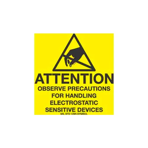 Paper Labels w/ "Attention Observe Precautions" Print, 2"L x 2"W, Yellow, Roll of 500