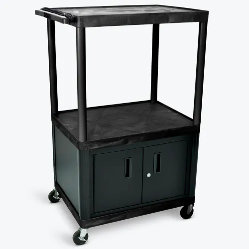 Luxor® 54"H AV Cart - 3 Shelves, Cabinet, Electric