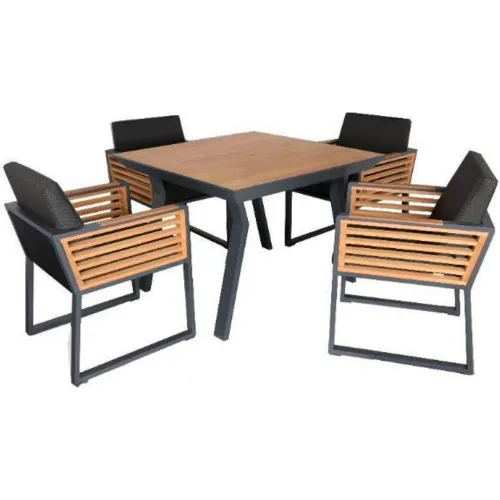 Babmar Avant Dining Set For 4 with Teak Side Panels, Teak Table Top, Sunproof Black Cushions