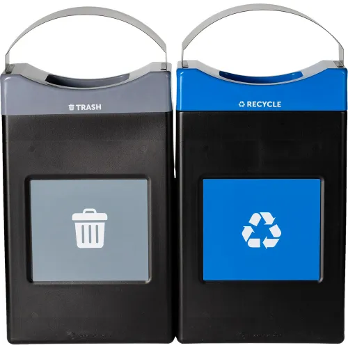 Commercial Zone® Avante 2-Stream Shallow Canopy Top Recycling Can, 30 Gal. Cap, Black/Gray/Blue