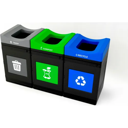Commercial Zone® Avante 3-Stream Standard Open Top Recycling Can, 55 Gal. Cap., Gray/Blue/Green