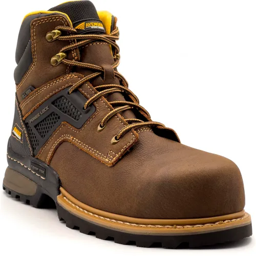 Avenger A-Max Dozer 6" Men's Work Boots, Composite Toe, Size 10W, Brown