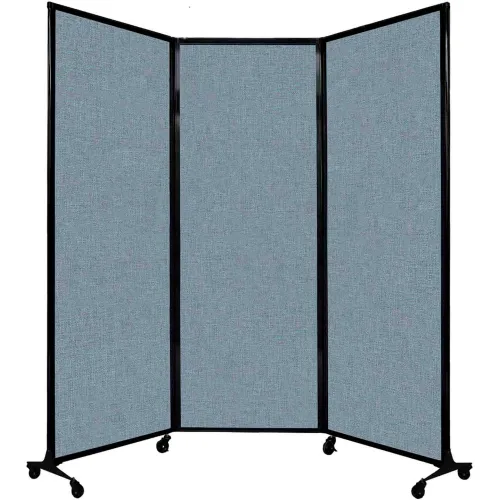 Portable Acoustical Partition Panel, AWRD 88"x8'4" Fabric, With Casters, Powder Blue
