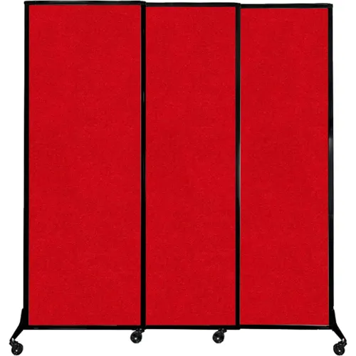Portable Acoustical Partition Panels, Sliding Panels, 88"x7' Fabric, With Casters, Red