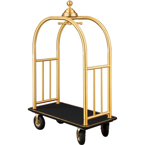Glaro Ball Crown Bellman Cart 48x25 Satin Brass Black Carpet, 4 Black Pneu Wheels