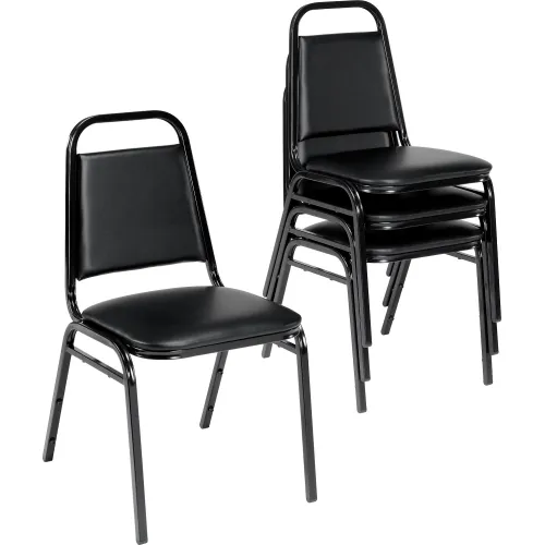Interion® Banquet Chair with Square Back, Vinyl, 1-1/2" Seat Thickness, Black - Pkg Qty 4