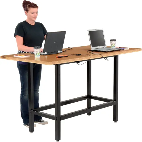 Interion® Standing Height Table with Power, 72"L x 36"W, Natural