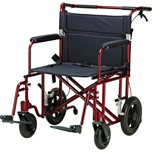 Bariatric Aluminum Transport Chair, Red Frame, 22" Seat Width, 450 lb. Capacity