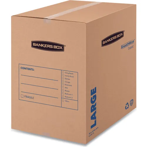 Bankers Box® SmoothMove Basic Large Moving Boxes, 18"L x 18"W x 24"H, Kraft/Blue, 15/Pack