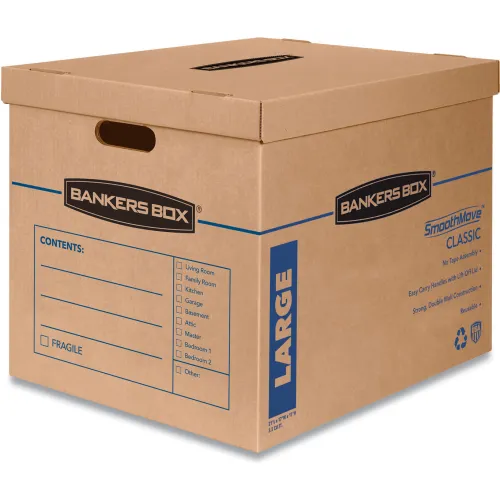 Bankers Box® SmoothMove Basic Large Moving Boxes, 21"L x 17"W x 17"H, Kraft/Blue, 5/Pack