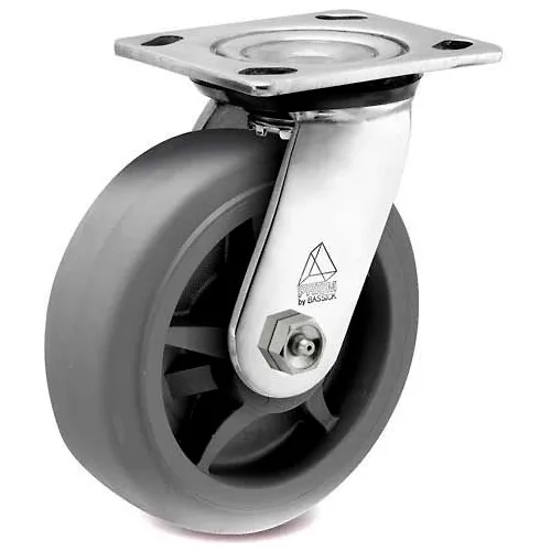 Bassick® Prism Stainless Steel Swivel Caster - Thermal Plastic Rubber - Flat Tread - 8" Dia.