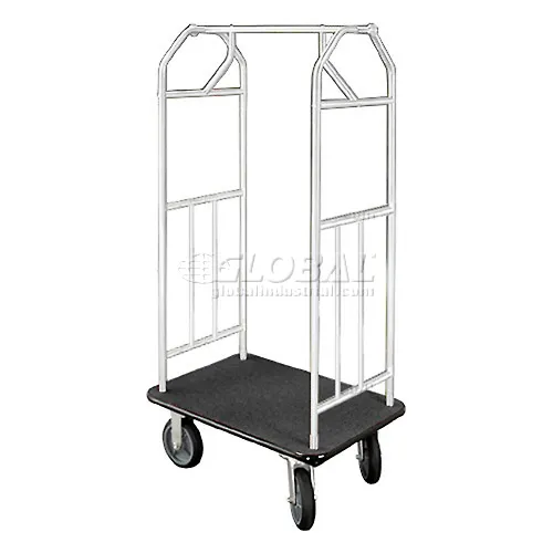 Glaro Bellman Hotel Cart 41x24 Satin Aluminum with Black Carpet & Rubber Wheels
