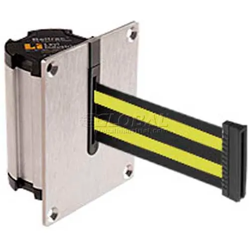 Lavi Industries Recessed Wall Mount Retractable Belt Barrier, Satin Case W/10' Black/Neon Ylw Belt