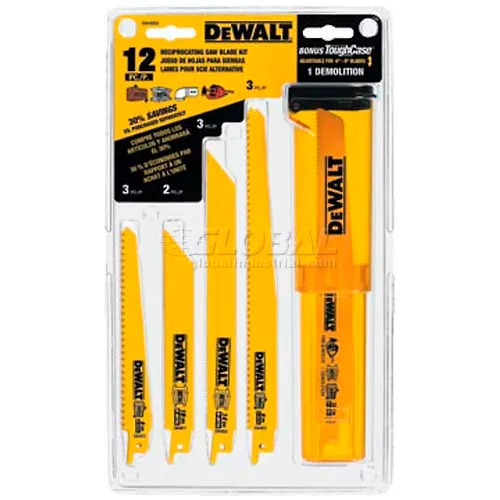 DeWALT® Bi-Metal Reciprocating Saw Blade Set, DW4892, 12 Piece Set W/Telescoping Case
