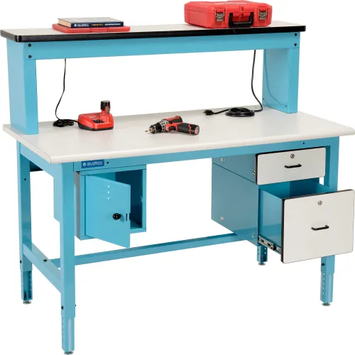 Global Industrial Bench-In-A-Box Technical Workbench, Plastic Laminate Top, 60"Wx30"D, Blue