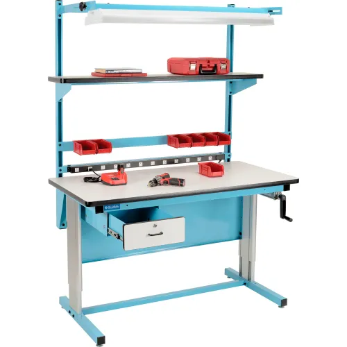 Global Industrial Bench-In-A-Box Ergonomic Workbench, Plastic Laminate Top, 60"Wx30"D, Blue