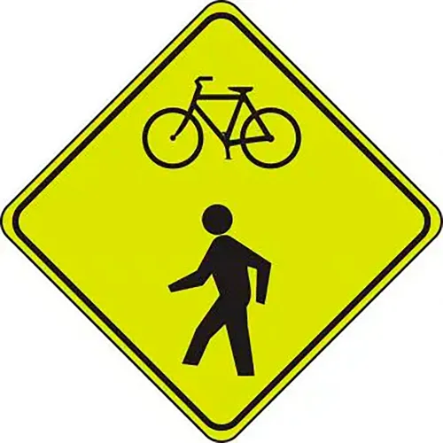 AccuformNMC Bicycle/Pedestrian Crossing Sign, Aluminum, 30" x 30", Black/Fluorescent Yellow/Green