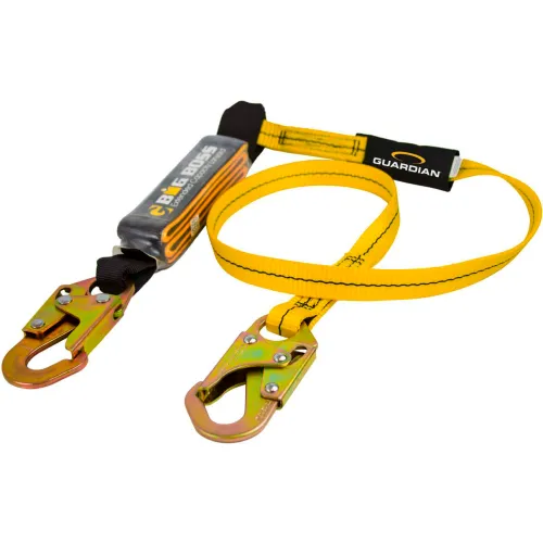 Guardian Big Boss Extended Free Fall Lanyard, 6' Single Leg w/ Steel Snap Hook, Shock Pack, Nylon