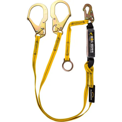 Guardian Big Boss Extended Free Fall Lanyard, 6' Double Leg W/ Steel Snap Hook, 18" Extension, Nylon