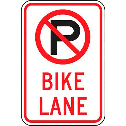 AccuformNMC Bike Lane w/ No Parking Safety Sign, EGP Aluminum, 18" x 12", Black/Red/White