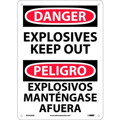 Bilingual Aluminum Sign - Danger Explosives Keep Out