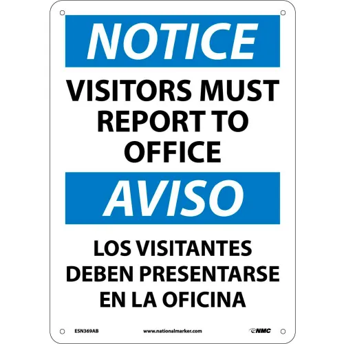 Bilingual Aluminum Sign - Notice Visitors Must Report To Office
